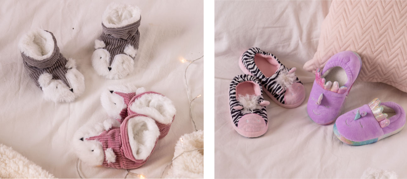 As playful as ever, our kid’s slipper range feature fun patterns and designs to put smiles on faces this year. From colourful unicorns to toothy crocodiles, let their imagination run wild while protecting their toes. Our fox booties come with a slip-resistant tread to help keep tiny tots upright as their confidence grows.