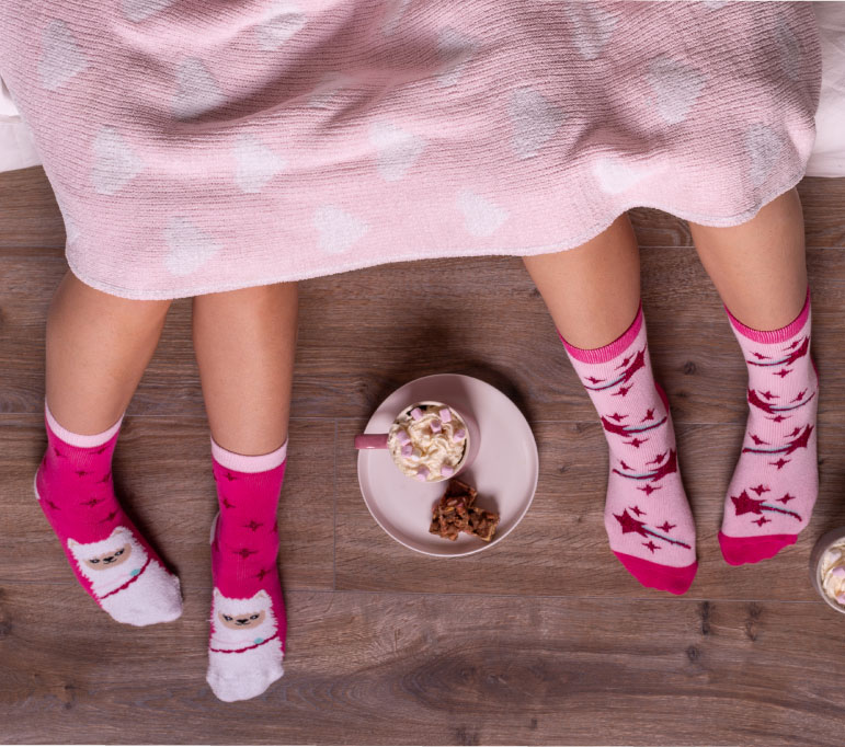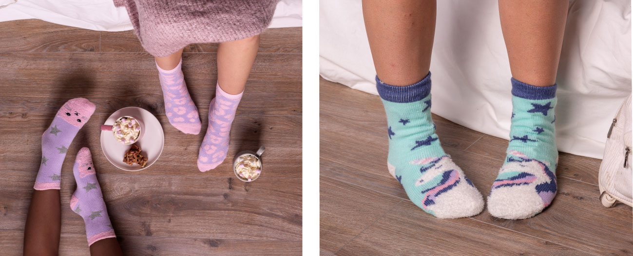 We’ve also got socks in twin packs in penguin, deer and swan designs, available in ice blue and pastel purple. Perfect for your own little princess. If llamas and cats are more their thing, there’s a twin in pastel shades of purple and pink, perfect for little animal lover in your life. Plus, of course, they feature with slip-resistant treads for added playtime confidence.