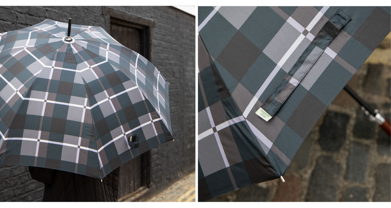 Umbrella canopies will now be made from 100% GRS Certified Recycled PET Fabric (made from plastic bottles – how clever is that!) and water repellency treatments will be PFC-free which causes less harm to the environment. Most steel frames will have a black electroplating finish which reduces water usage by around 50%, plastic handles will now be made from GRS certified recycled PET and all wooden handles will be from FSC certified sources only.