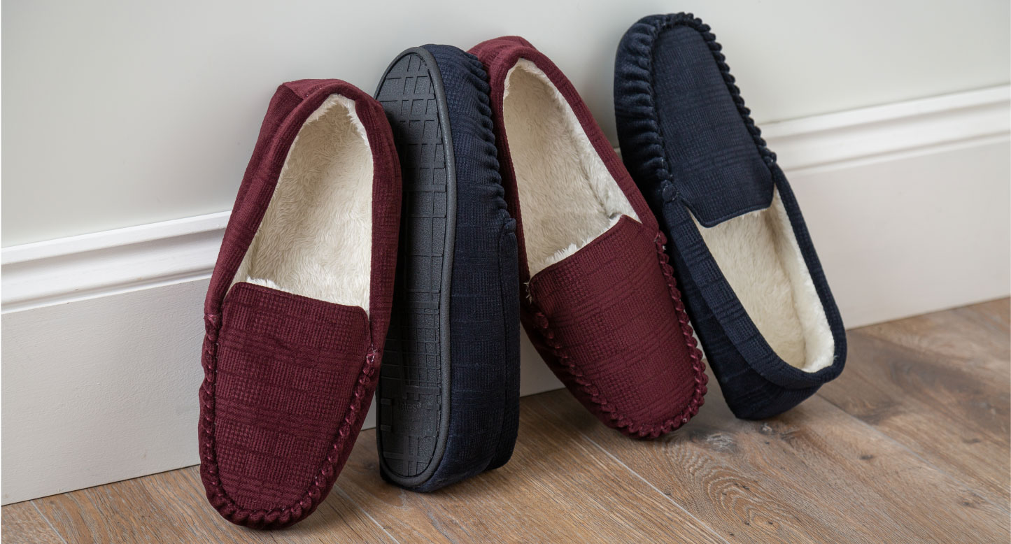 The men’s collection has really excelled this year, with classic traditional check patterns on premium felt, embossed velour fabric with soft sherpa lining and quintessential suede. Katie describes the range as “classical styles designed for comfort, with luxurious fabrics and a contemporary approach to detail.” Again, a playful element is incorporated into the men’s gift set range as well as keeping timeless prints with our ‘Smart Harris Tweed range and fun campervan mug and sock set.’ Charcoal grey and rich navy and burgundy tones are used throughout the range, creating a ‘must-have collection for AW19.’