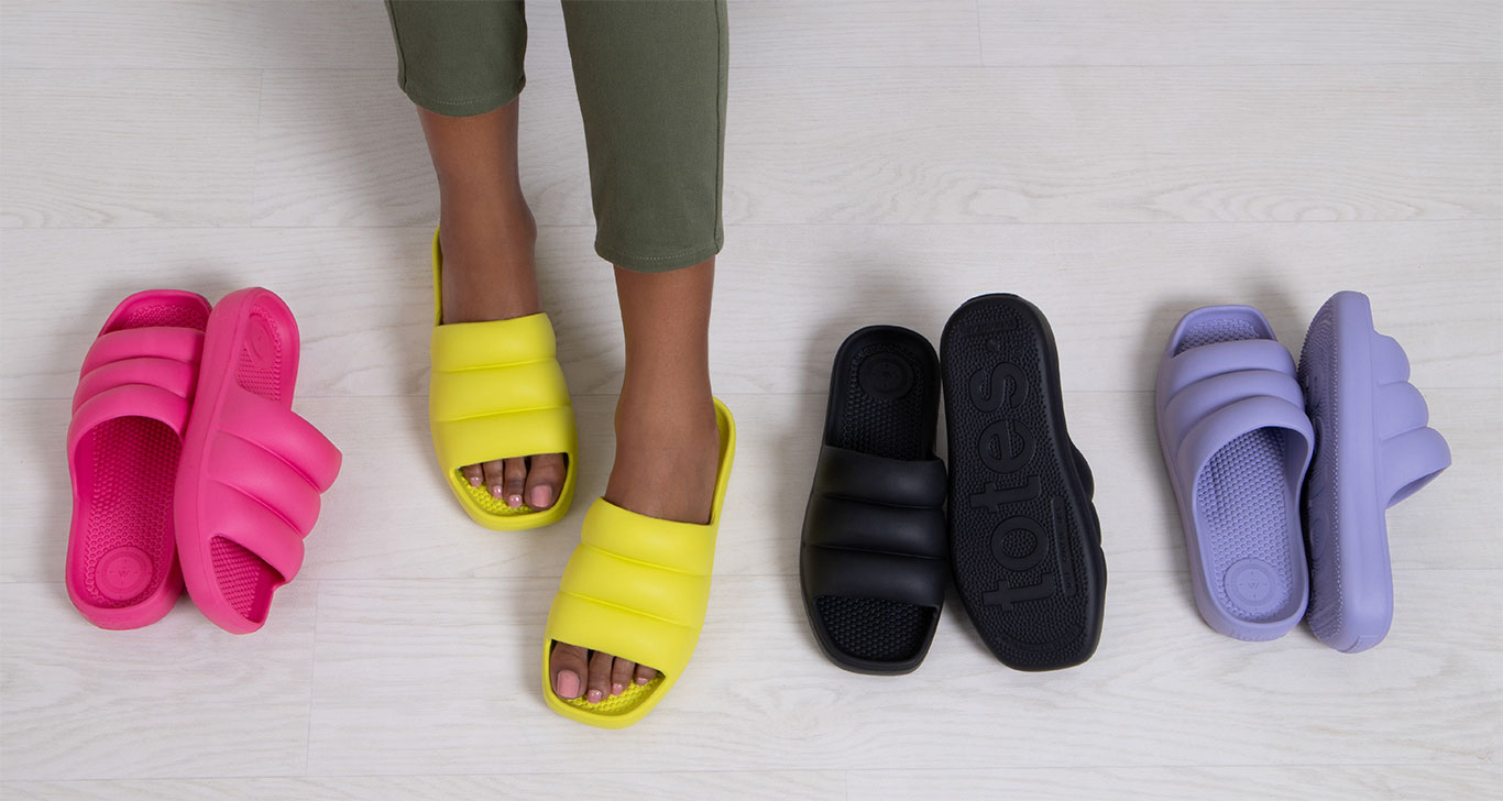 Here at totes HQ, we’re going wild for the new moulded Pillow Puff Slide in 4 popping shades to complement your tan AND that summer pedicure! Accessorise any outfit and turn heads with vivid lime, or maybe lilac – our photographer’s favourite - is your top pick too? |