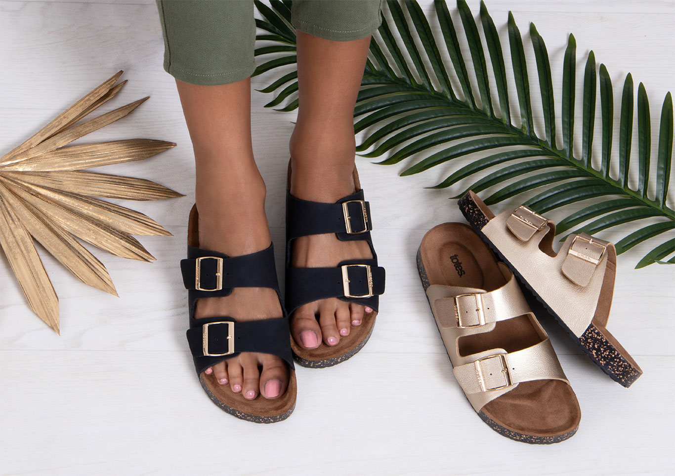 Our classic buckle slider is available in 2 styles. The single buckle is available in black and taupe with an adjustable buckle for the perfect fit, showing off your tan at the same time. Holiday ready, summer sunshine here we come! |