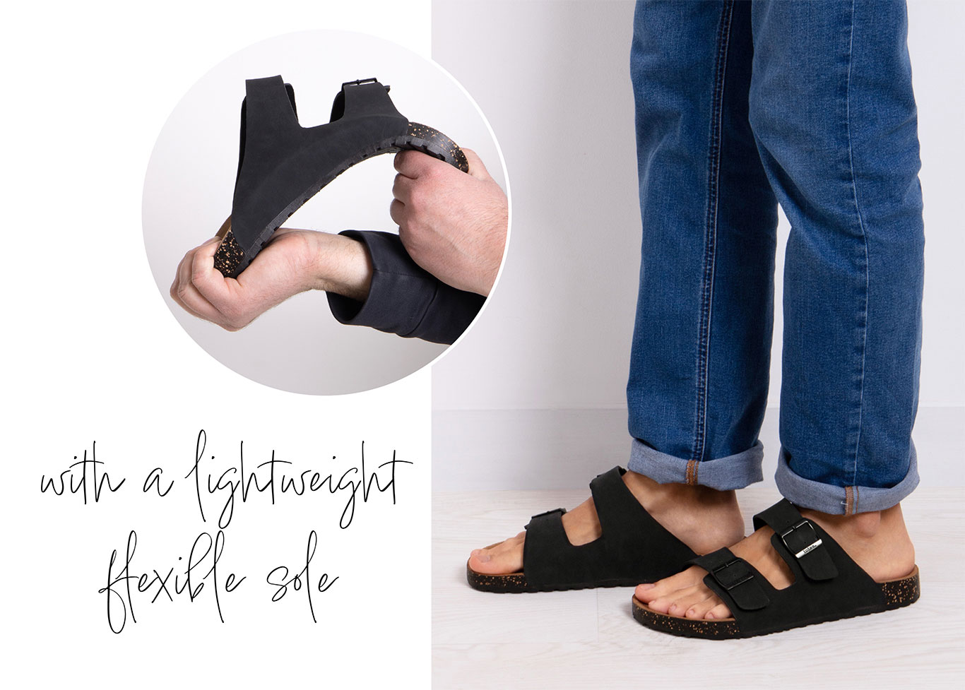 Not forgetting him – our classically styled adjustable double buckle slip-on sandals are available in black in men’s sizes. Flexible and lightweight, a great warm weather staple and the perfect accessory to his summer wardrobe. |