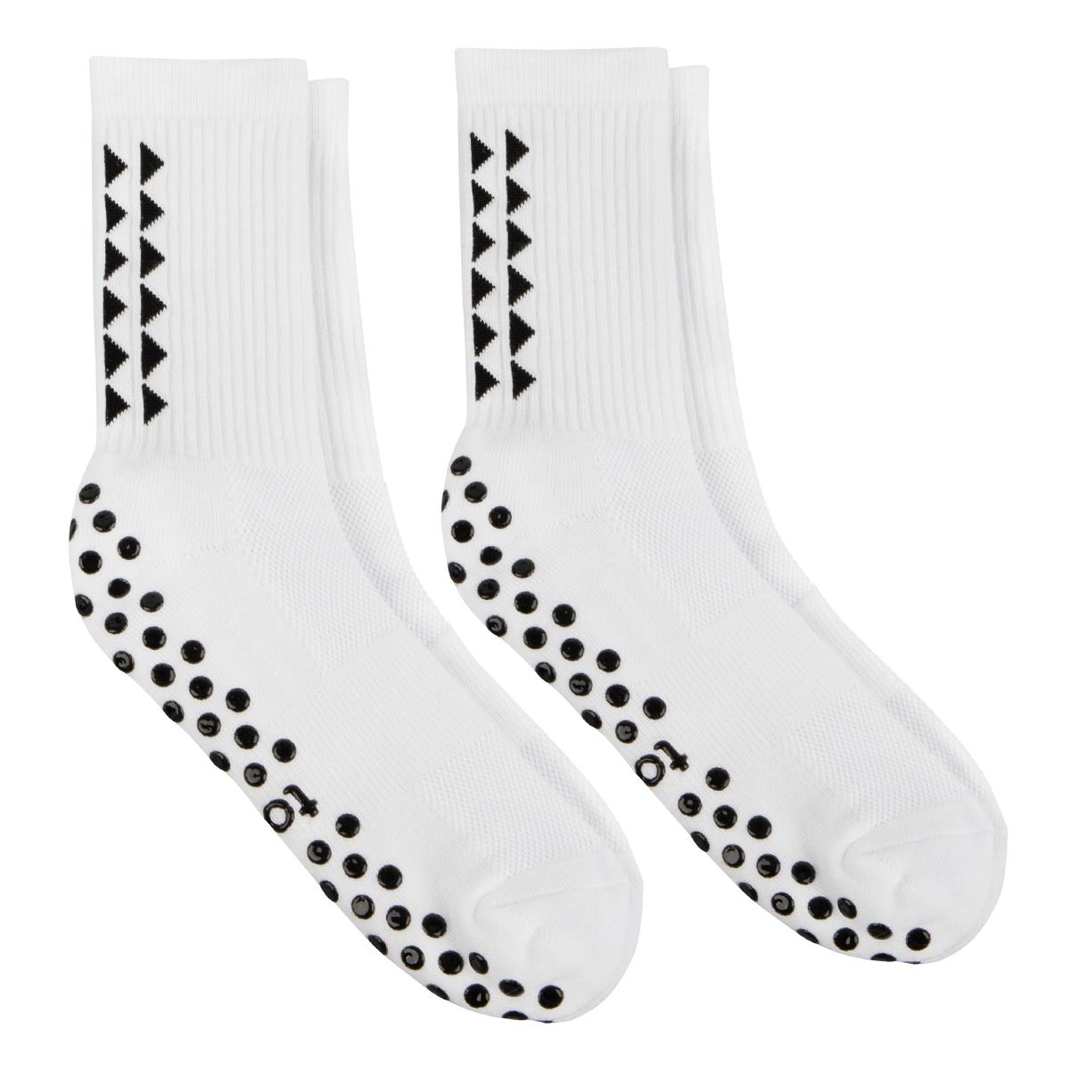 A great twin pack of unisex sports socks, both in white with slip-resistant tread. Triangle patterned detailing on the heel and back adds interest for casual style, whatever your sport.