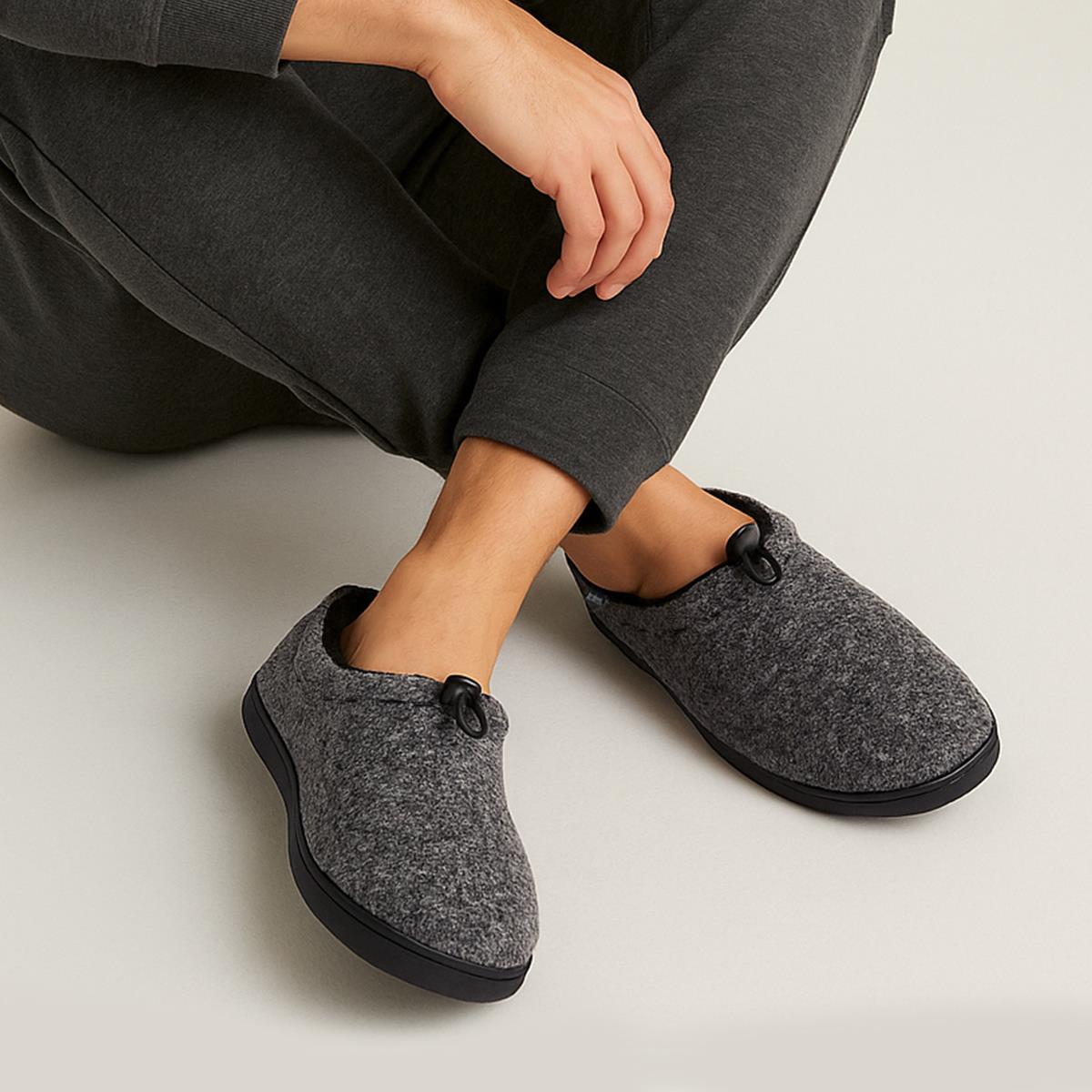 These on-trend full back felt slippers with toggle styling to the front are a different take on a cosy low boot style. In a great grey marl shade, they're comfy, stylish and a fabulous winter footwear staple.